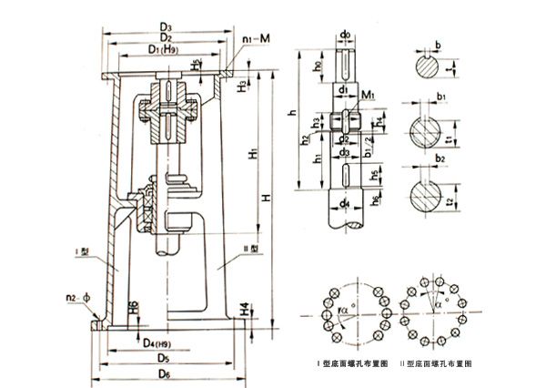 注:圖示所注“H”僅與樣本BLD系列減速機(jī)相配,如選用其他型號(hào)或其他廠家減速機(jī),“H”需呀另行計(jì)算。增高后的 LDJ型機(jī)架其下部空間高度可容納205、206或207雙端面機(jī)械密封。